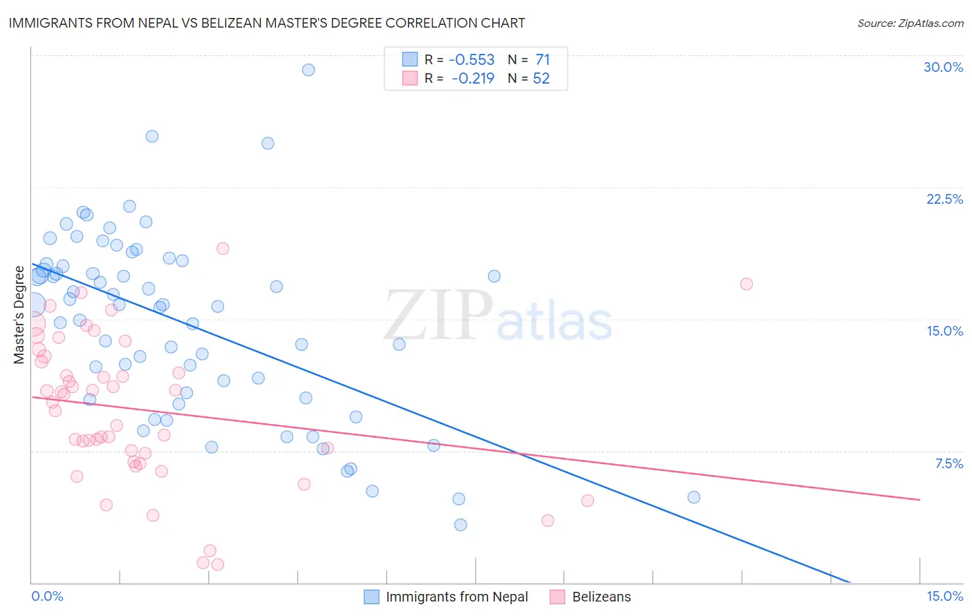 Immigrants from Nepal vs Belizean Master's Degree Correlation Chart