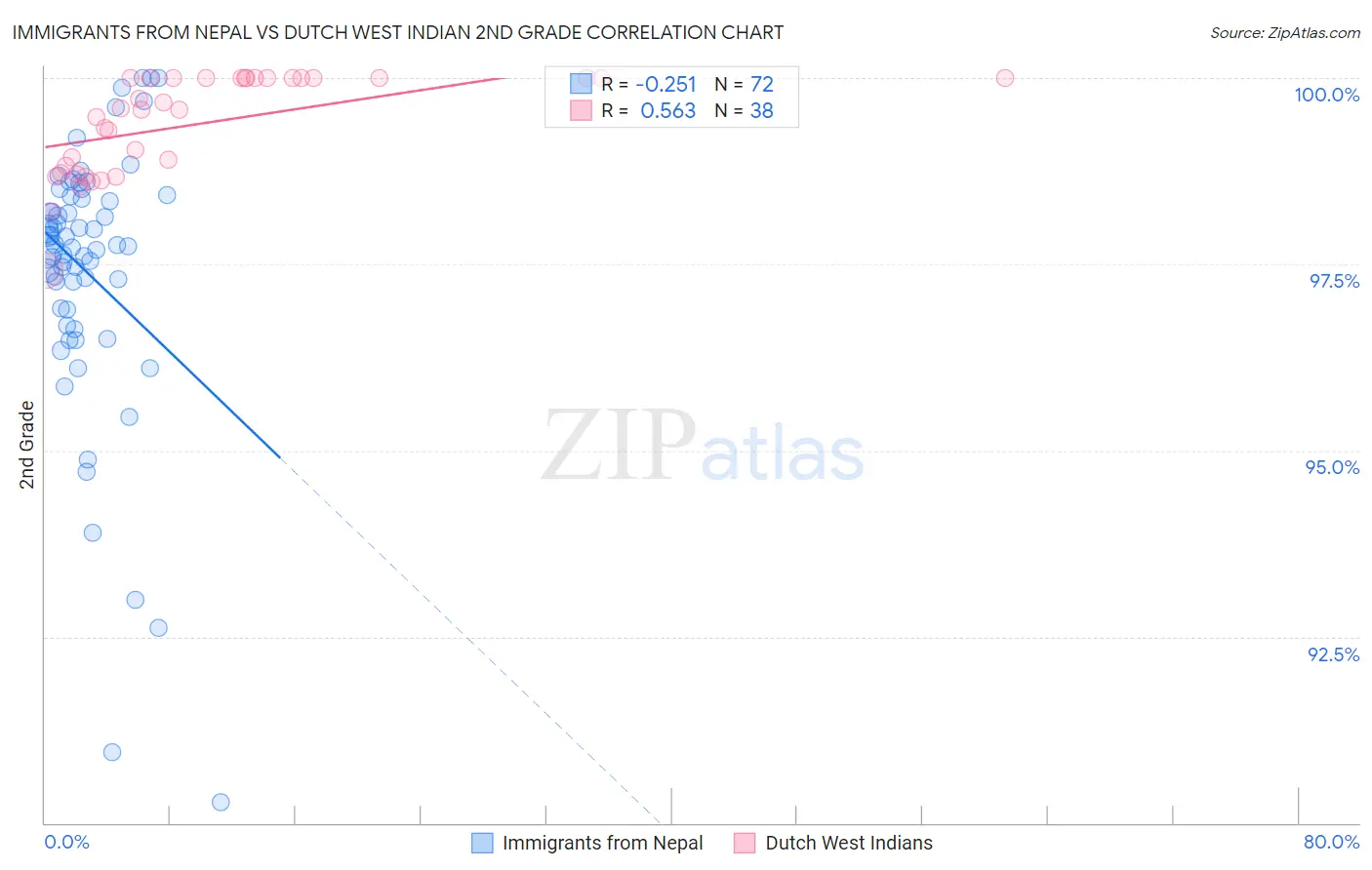 Immigrants from Nepal vs Dutch West Indian 2nd Grade Correlation Chart