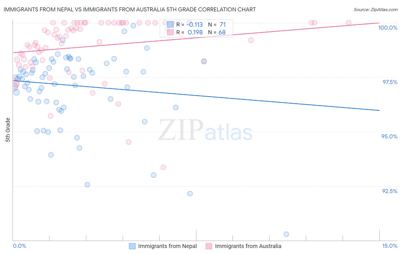 Immigrants from Nepal vs Immigrants from Australia 5th Grade Correlation Chart