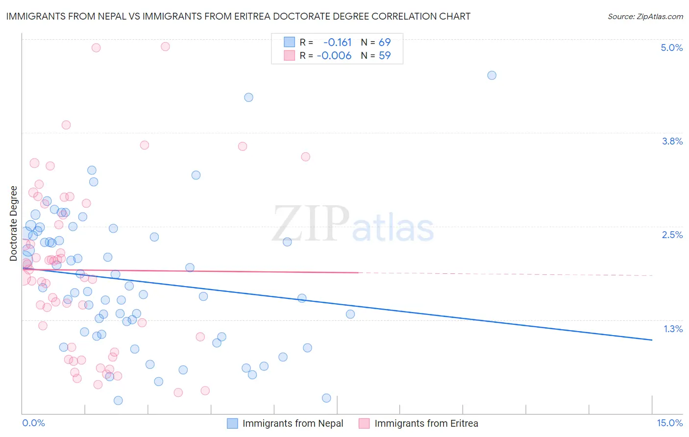 Immigrants from Nepal vs Immigrants from Eritrea Doctorate Degree Correlation Chart