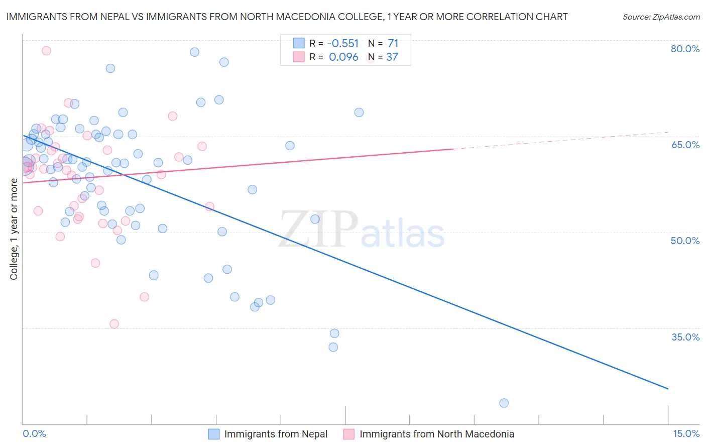 Immigrants from Nepal vs Immigrants from North Macedonia College, 1 year or more Correlation Chart