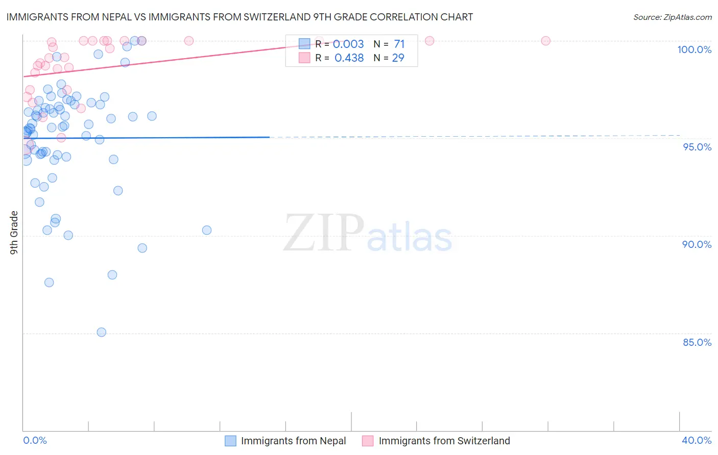 Immigrants from Nepal vs Immigrants from Switzerland 9th Grade Correlation Chart