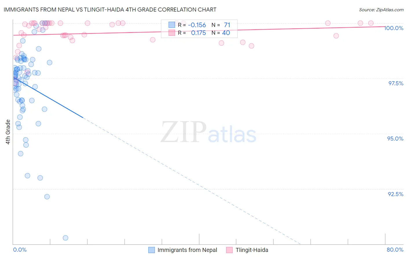 Immigrants from Nepal vs Tlingit-Haida 4th Grade Correlation Chart