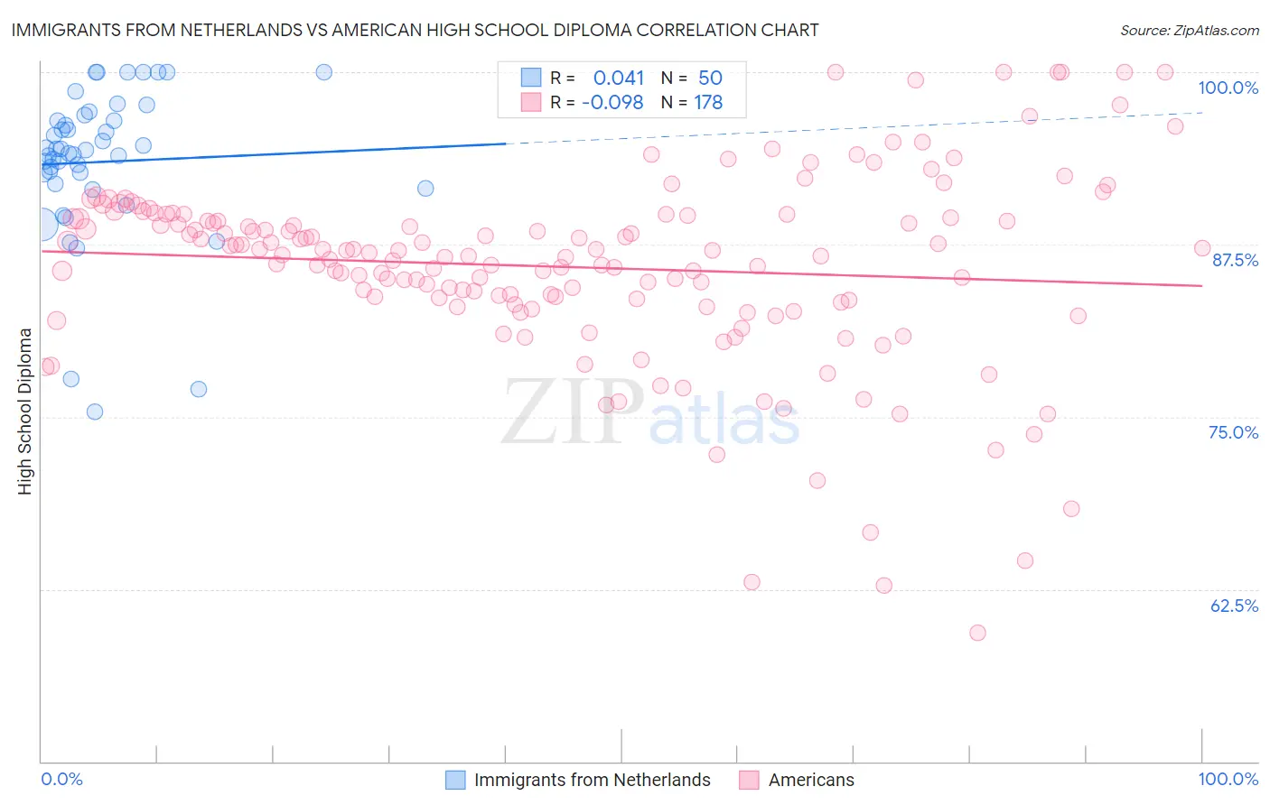 Immigrants from Netherlands vs American High School Diploma Correlation Chart