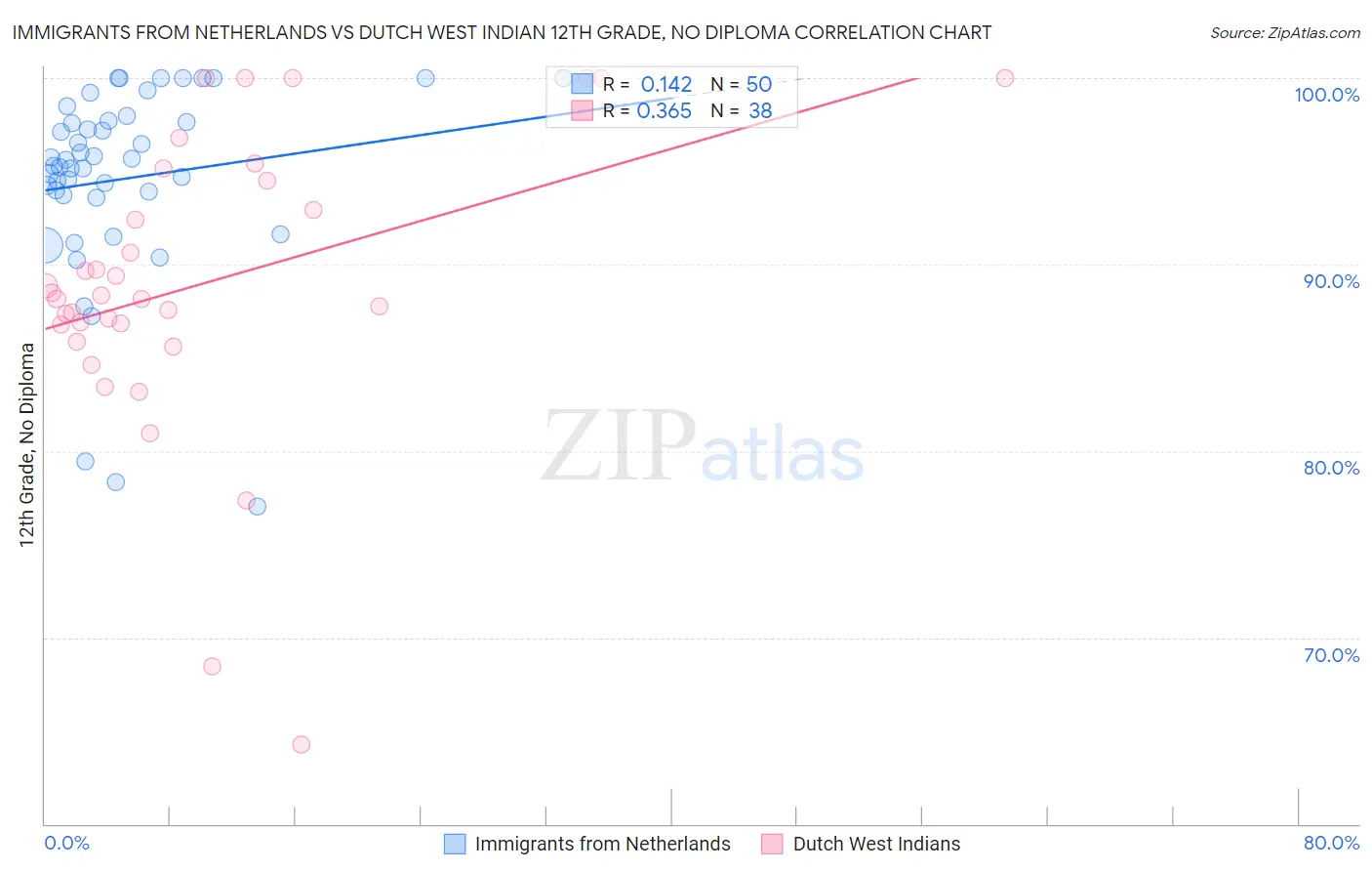 Immigrants from Netherlands vs Dutch West Indian 12th Grade, No Diploma Correlation Chart