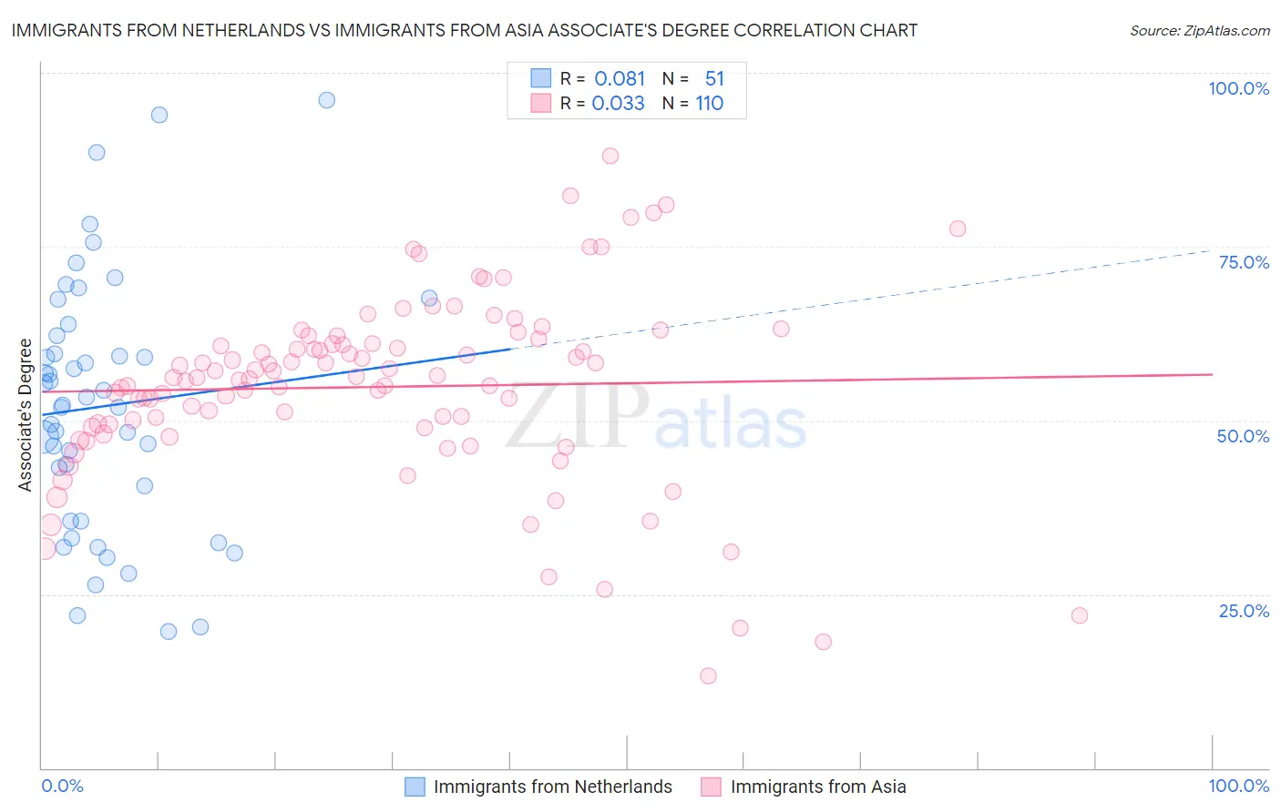 Immigrants from Netherlands vs Immigrants from Asia Associate's Degree Correlation Chart