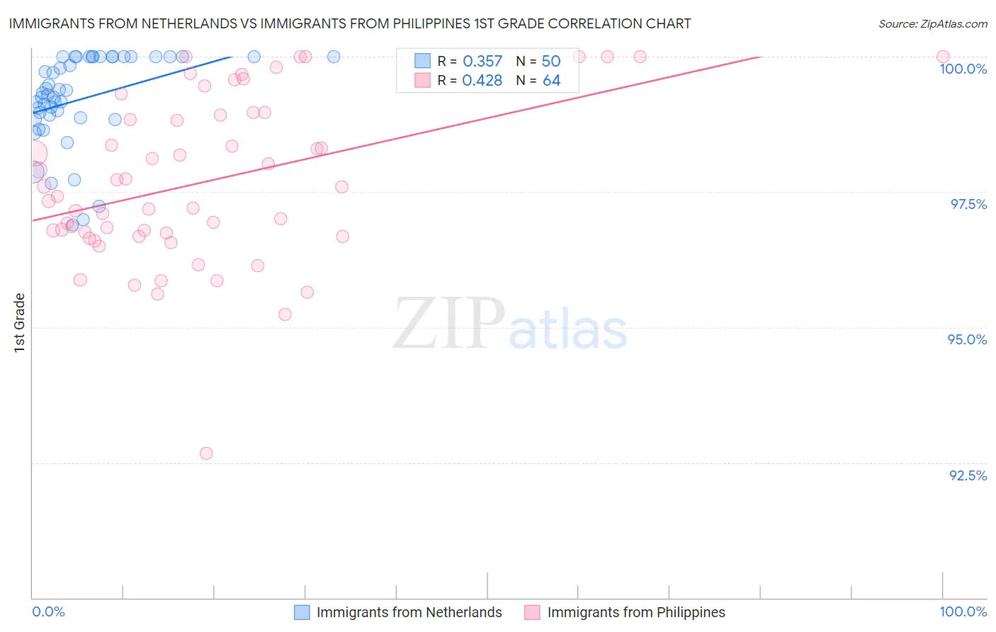 Immigrants from Netherlands vs Immigrants from Philippines 1st Grade Correlation Chart