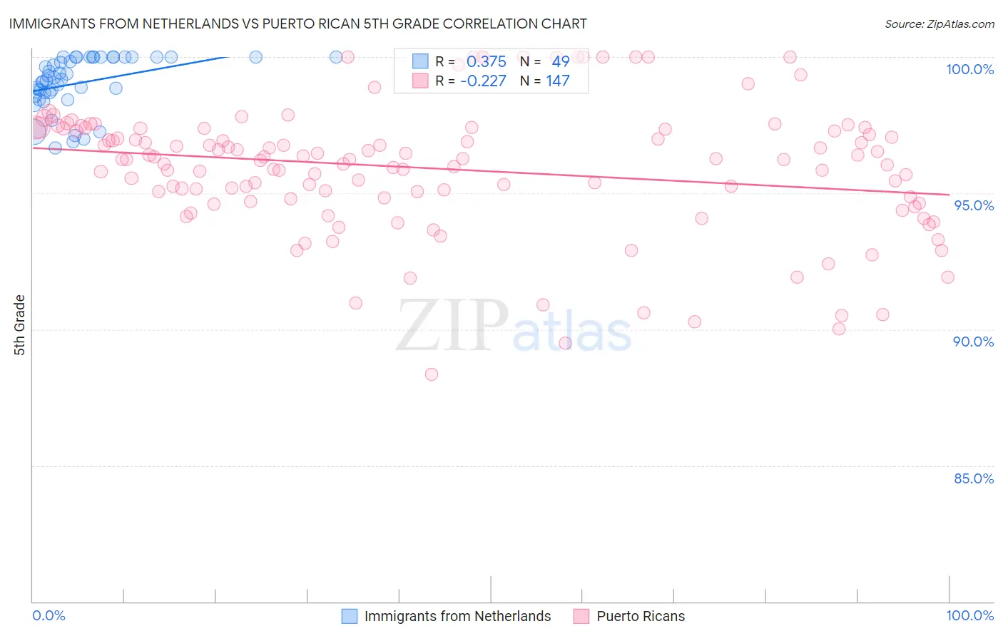 Immigrants from Netherlands vs Puerto Rican 5th Grade Correlation Chart