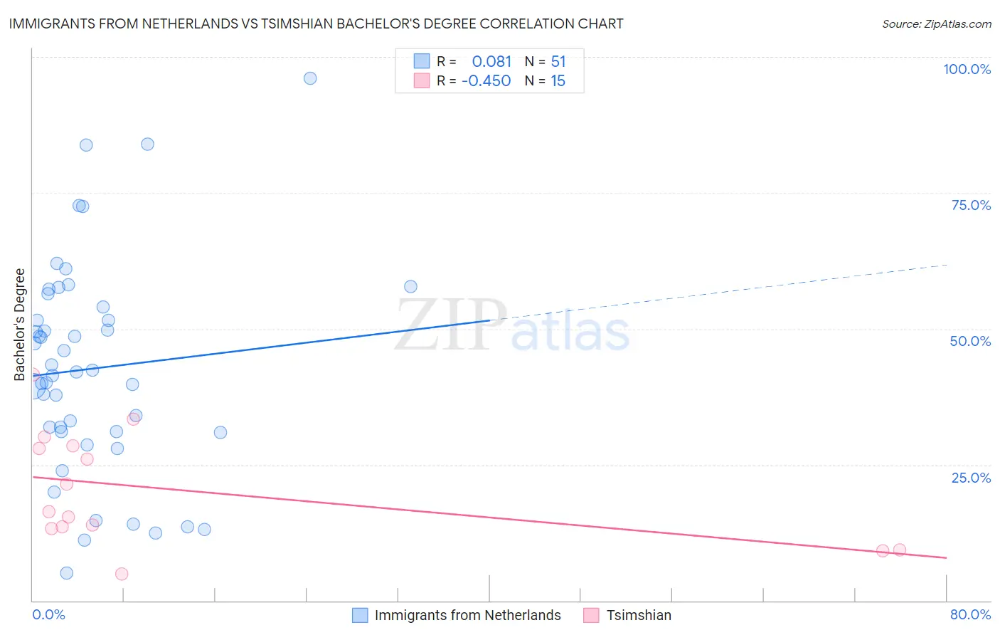 Immigrants from Netherlands vs Tsimshian Bachelor's Degree Correlation Chart