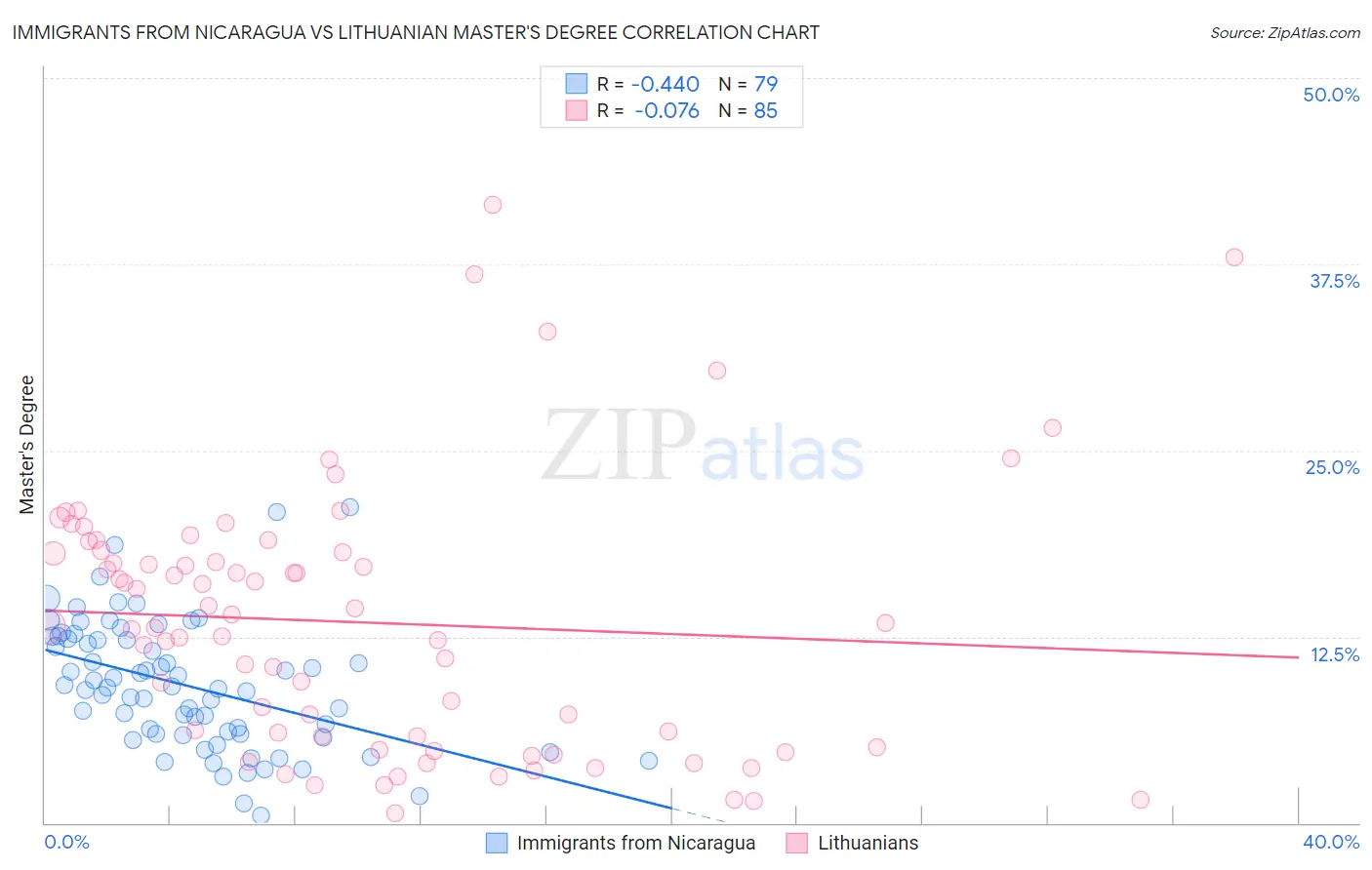 Immigrants from Nicaragua vs Lithuanian Master's Degree Correlation Chart