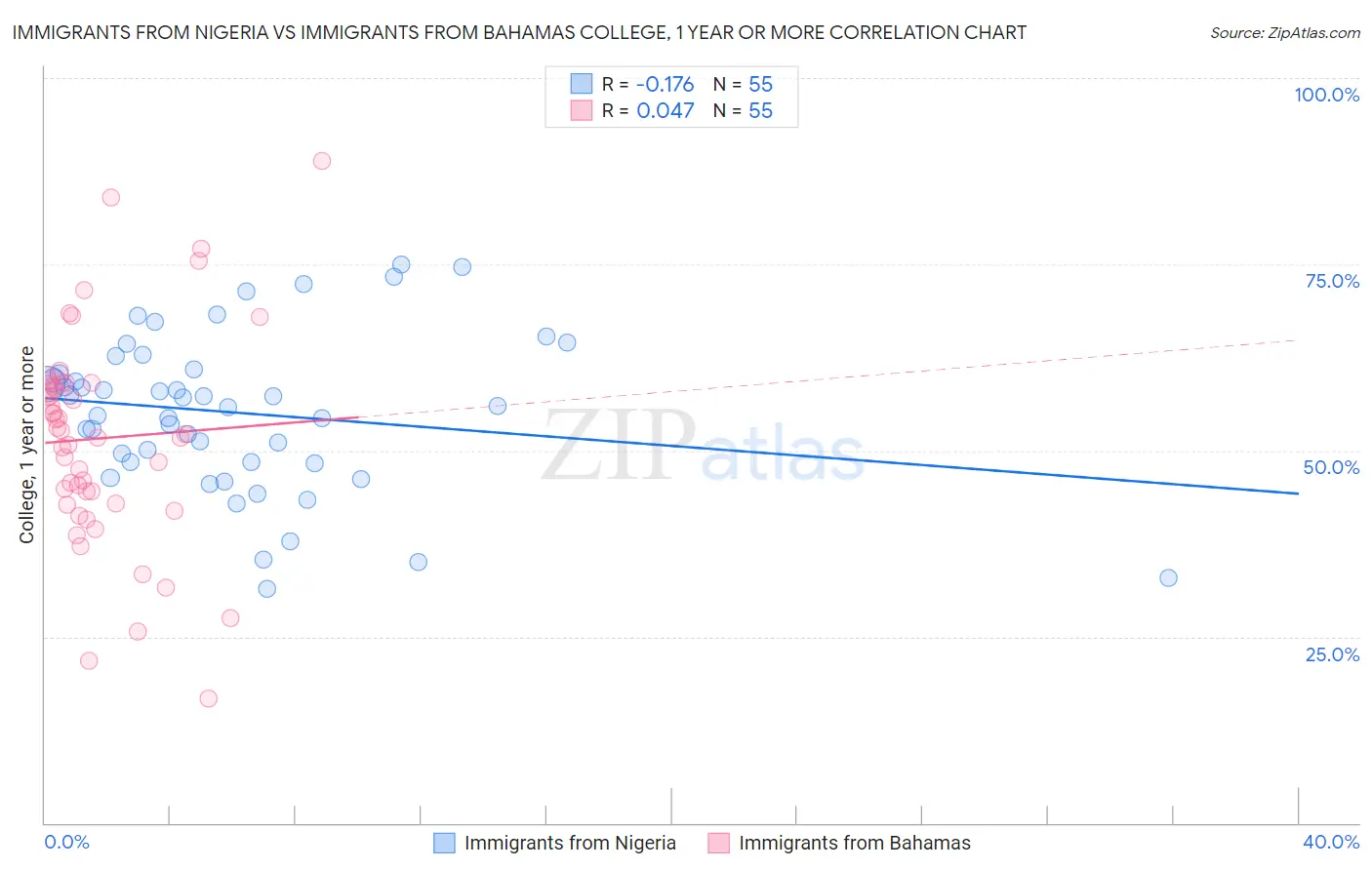 Immigrants from Nigeria vs Immigrants from Bahamas College, 1 year or more Correlation Chart