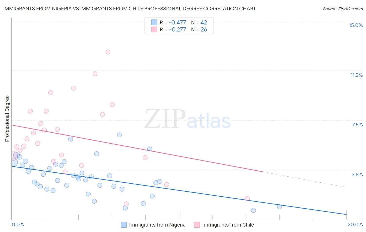 Immigrants from Nigeria vs Immigrants from Chile Professional Degree Correlation Chart