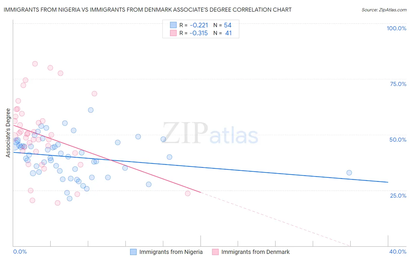 Immigrants from Nigeria vs Immigrants from Denmark Associate's Degree Correlation Chart