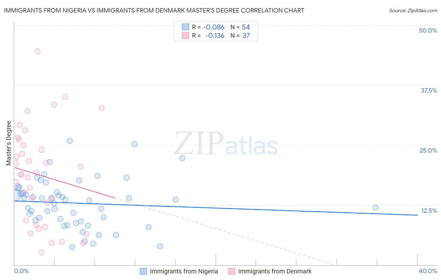 Immigrants from Nigeria vs Immigrants from Denmark Master's Degree Correlation Chart
