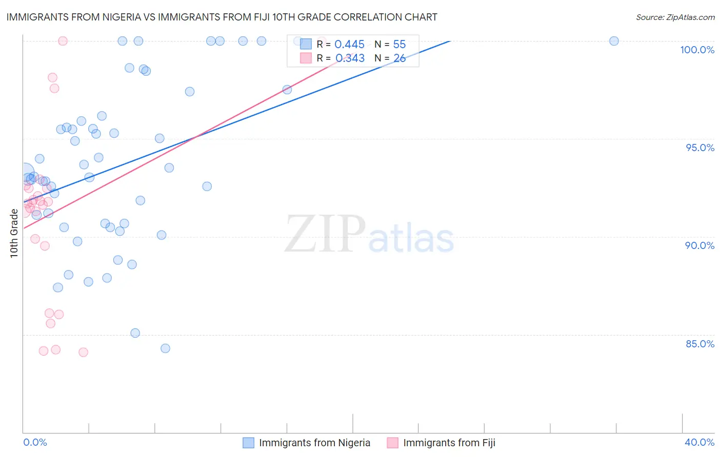 Immigrants from Nigeria vs Immigrants from Fiji 10th Grade Correlation Chart
