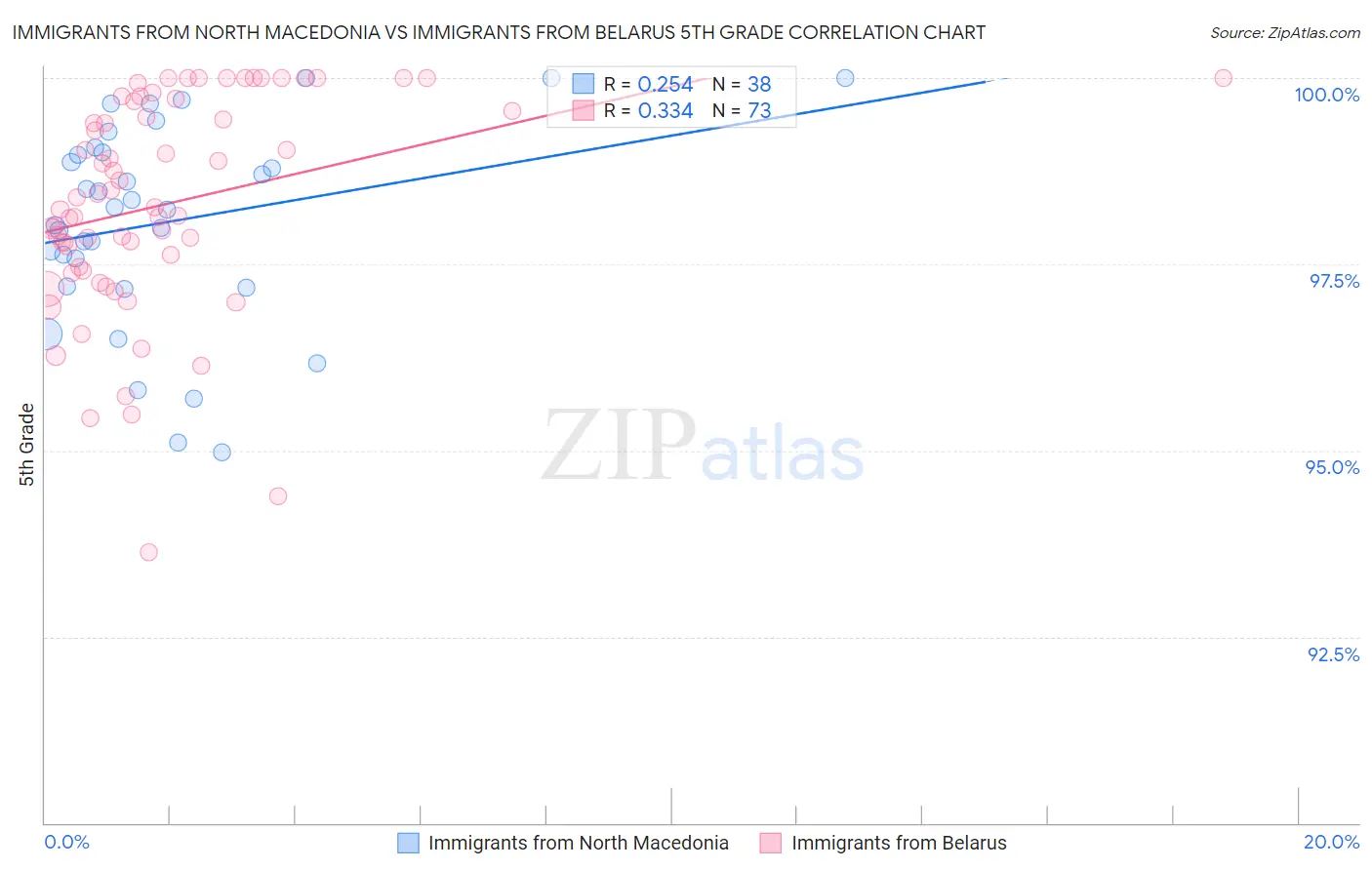 Immigrants from North Macedonia vs Immigrants from Belarus 5th Grade Correlation Chart
