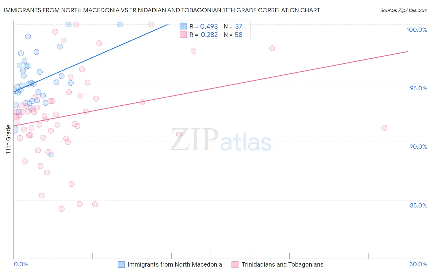 Immigrants from North Macedonia vs Trinidadian and Tobagonian 11th Grade Correlation Chart