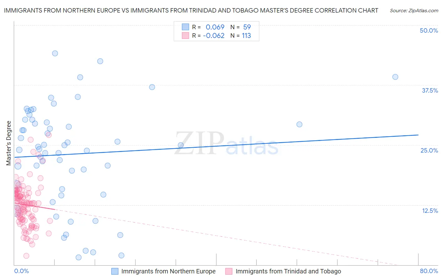 Immigrants from Northern Europe vs Immigrants from Trinidad and Tobago Master's Degree Correlation Chart