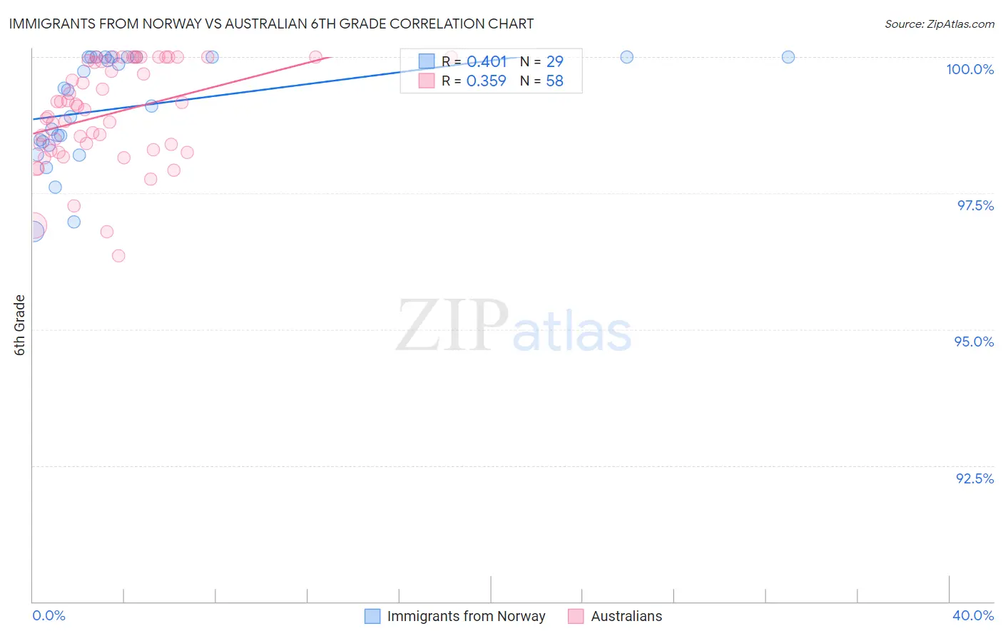 Immigrants from Norway vs Australian 6th Grade Correlation Chart