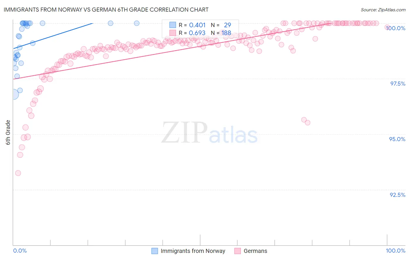 Immigrants from Norway vs German 6th Grade Correlation Chart