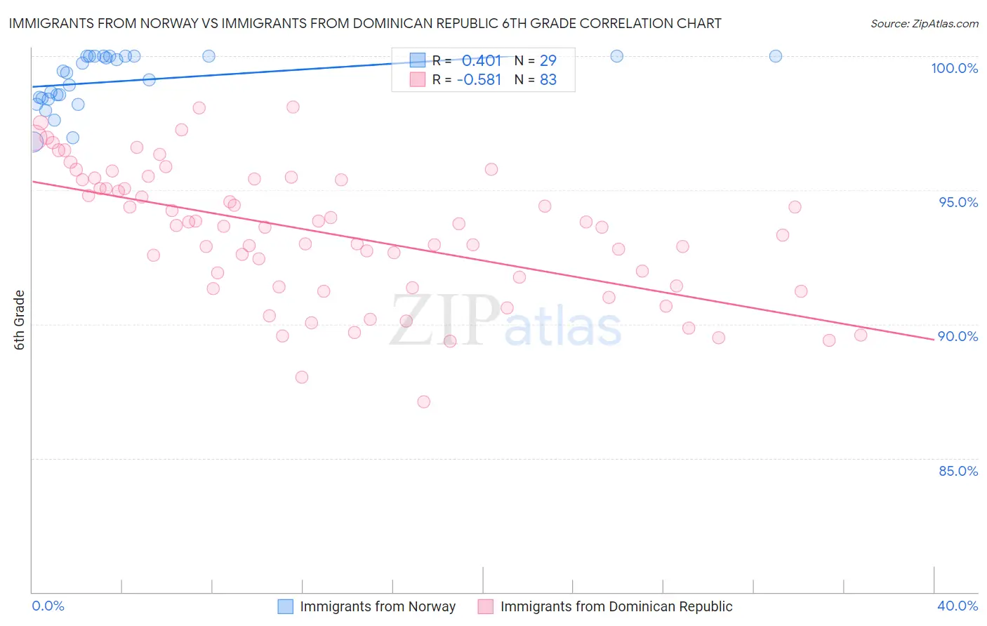 Immigrants from Norway vs Immigrants from Dominican Republic 6th Grade Correlation Chart