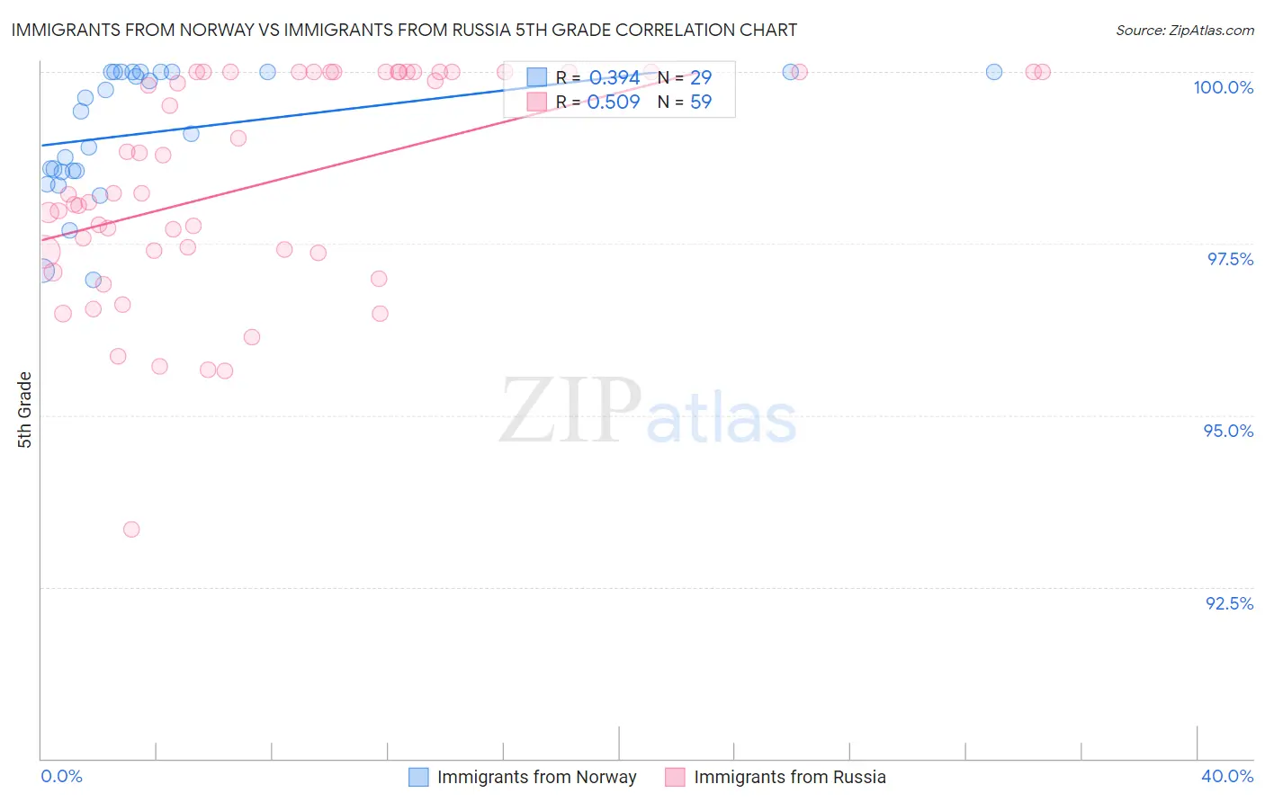 Immigrants from Norway vs Immigrants from Russia 5th Grade Correlation Chart