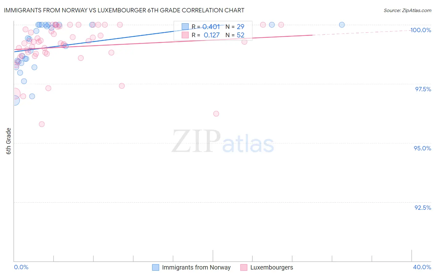 Immigrants from Norway vs Luxembourger 6th Grade Correlation Chart