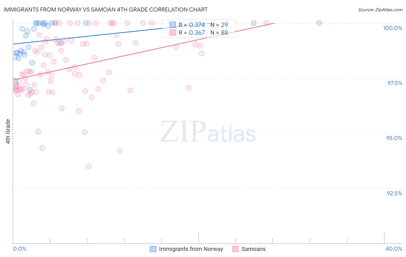 Immigrants from Norway vs Samoan 4th Grade Correlation Chart