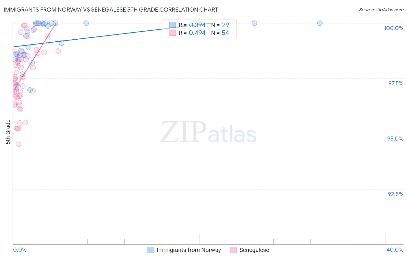 Immigrants from Norway vs Senegalese 5th Grade Correlation Chart