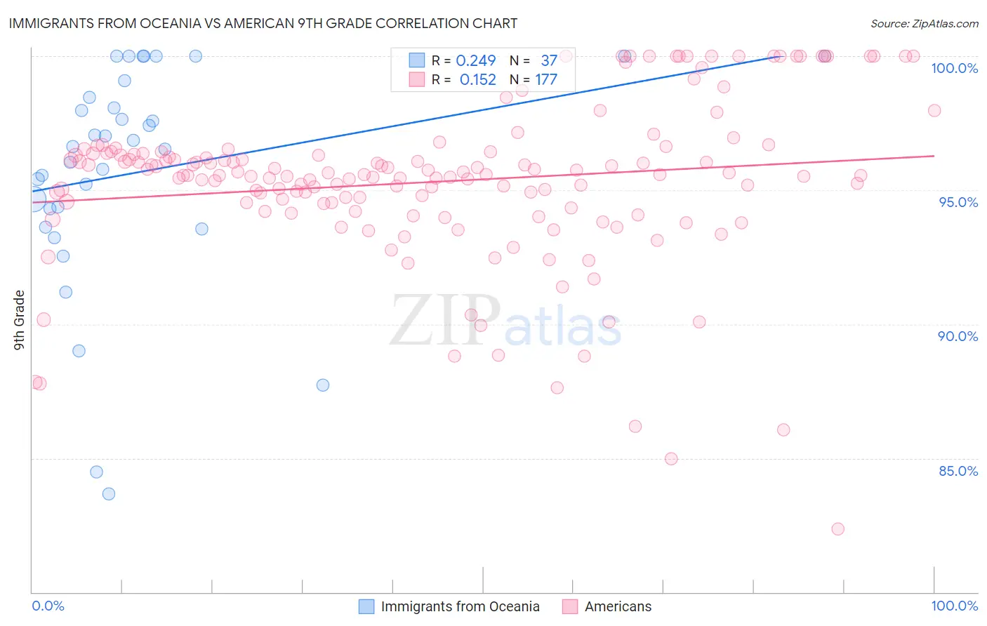 Immigrants from Oceania vs American 9th Grade Correlation Chart