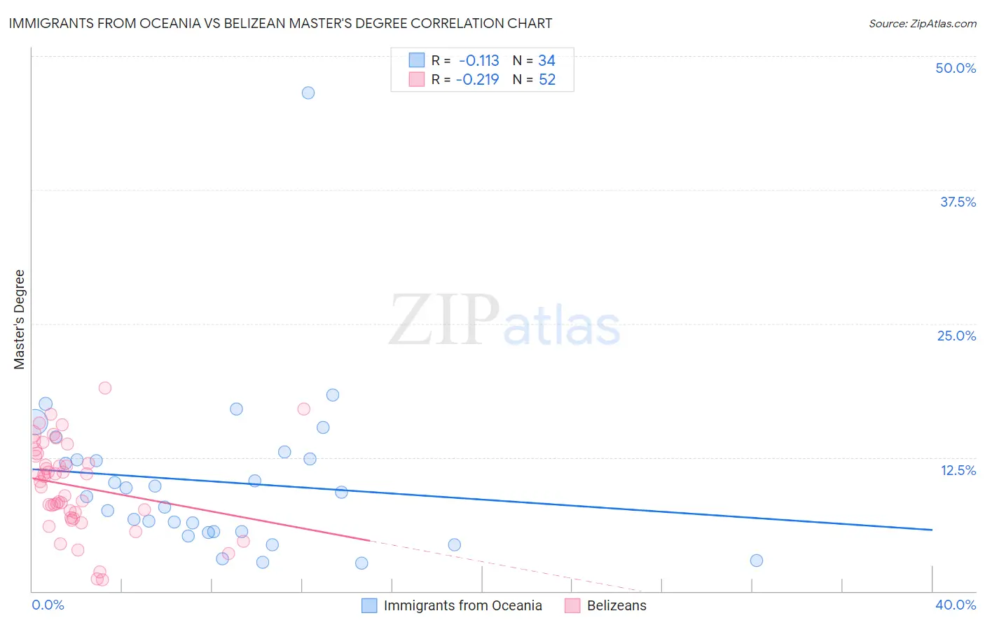 Immigrants from Oceania vs Belizean Master's Degree Correlation Chart