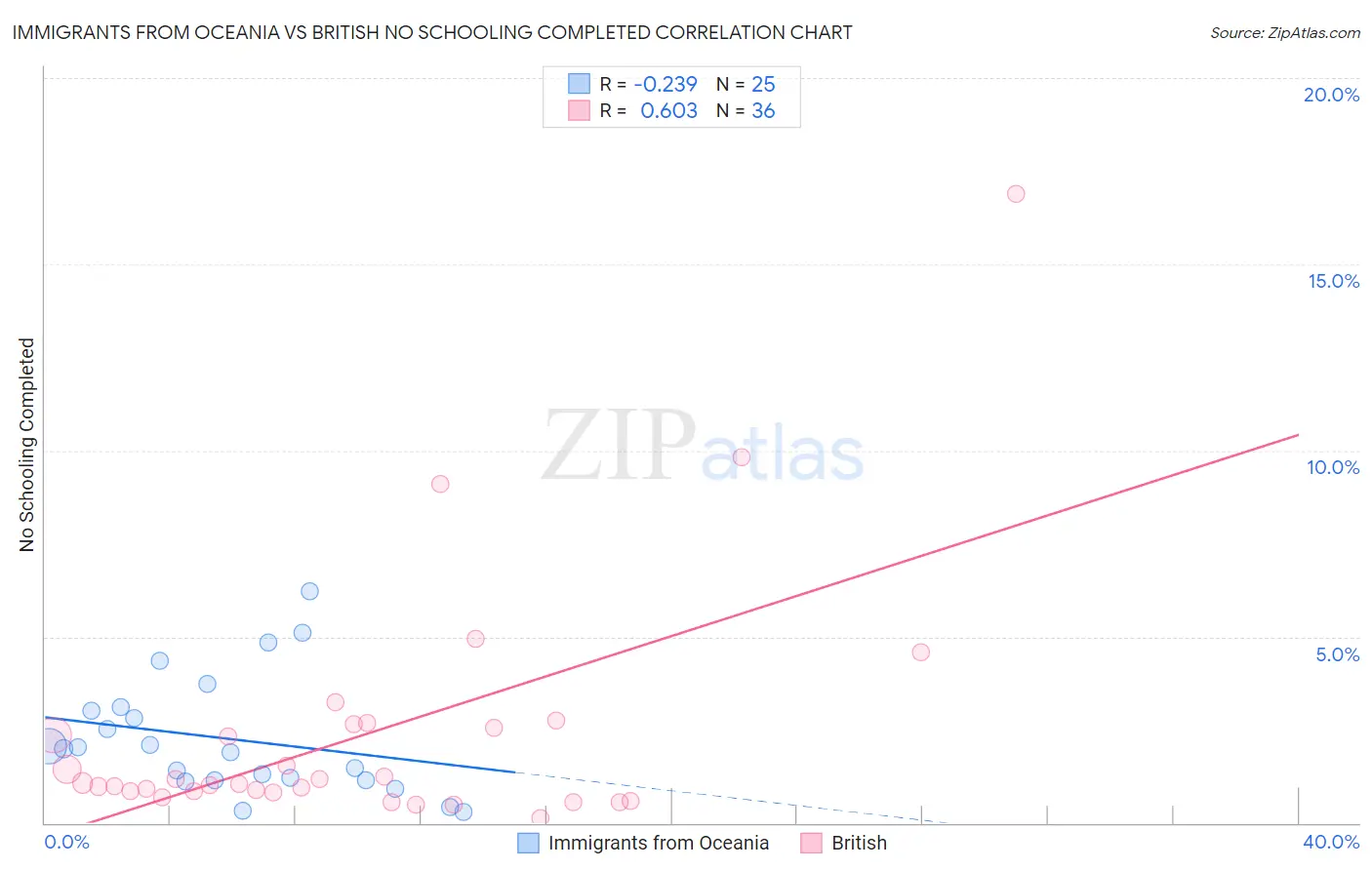 Immigrants from Oceania vs British No Schooling Completed Correlation Chart