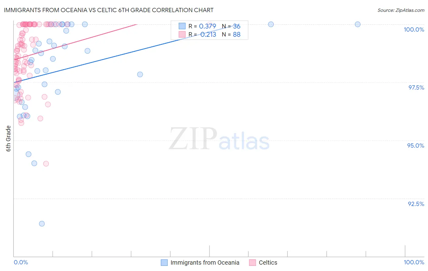 Immigrants from Oceania vs Celtic 6th Grade Correlation Chart