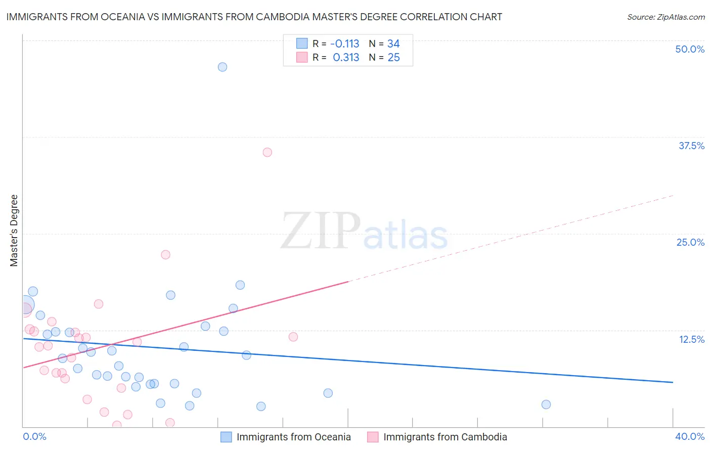 Immigrants from Oceania vs Immigrants from Cambodia Master's Degree Correlation Chart