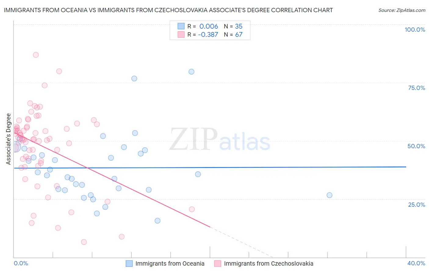 Immigrants from Oceania vs Immigrants from Czechoslovakia Associate's Degree Correlation Chart
