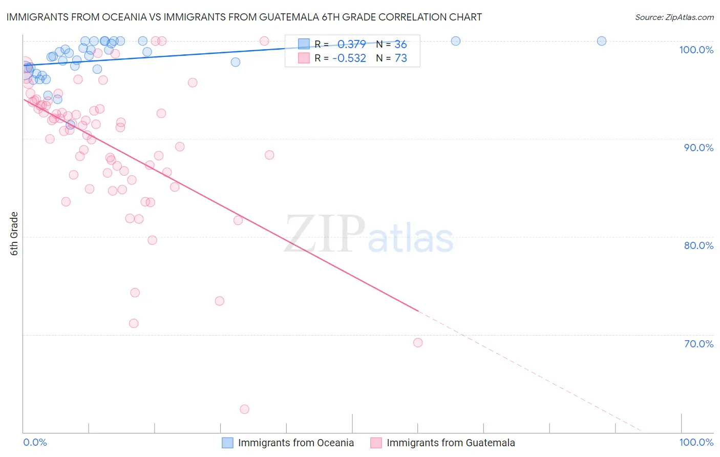 Immigrants from Oceania vs Immigrants from Guatemala 6th Grade Correlation Chart