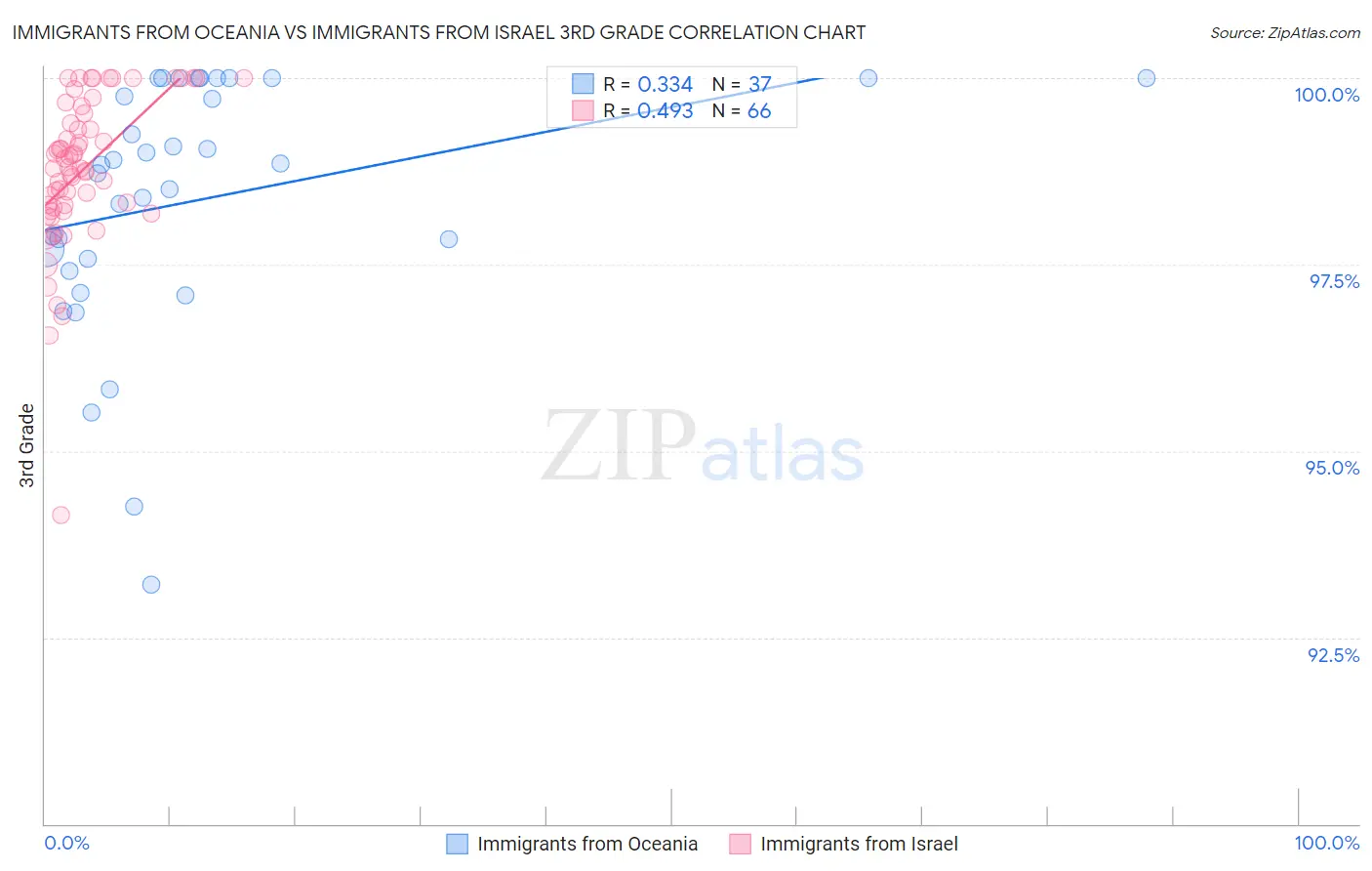 Immigrants from Oceania vs Immigrants from Israel 3rd Grade Correlation Chart