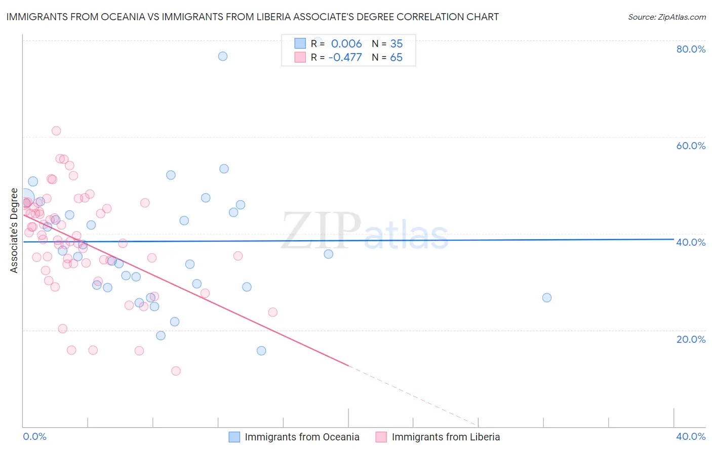 Immigrants from Oceania vs Immigrants from Liberia Associate's Degree Correlation Chart