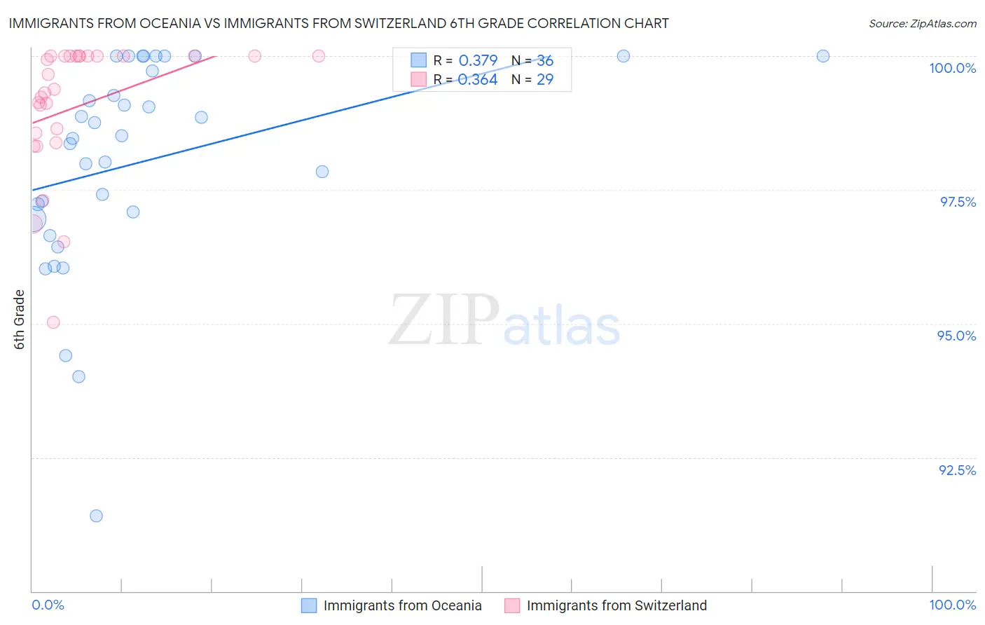 Immigrants from Oceania vs Immigrants from Switzerland 6th Grade Correlation Chart