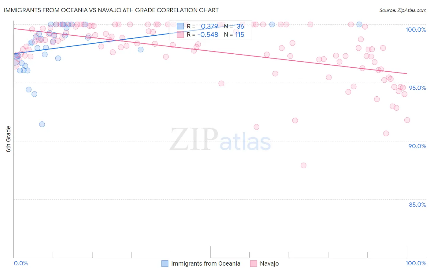 Immigrants from Oceania vs Navajo 6th Grade Correlation Chart