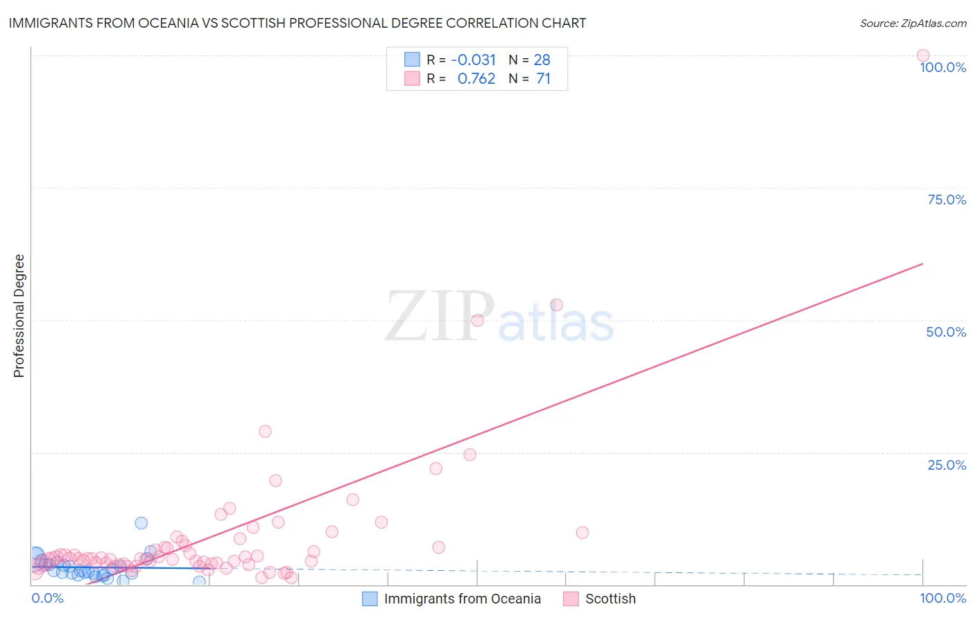 Immigrants from Oceania vs Scottish Professional Degree Correlation Chart