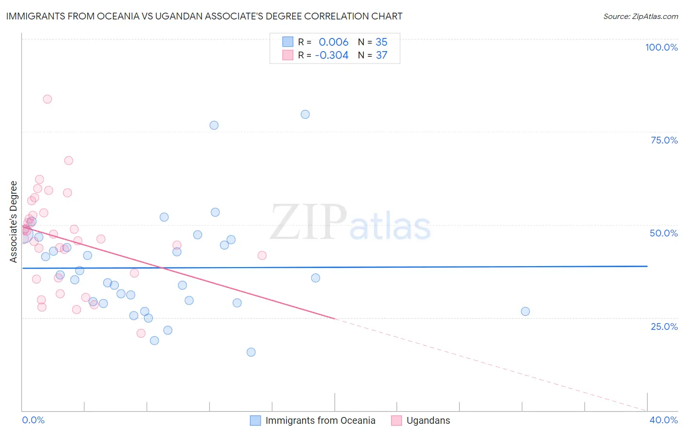 Immigrants from Oceania vs Ugandan Associate's Degree Correlation Chart