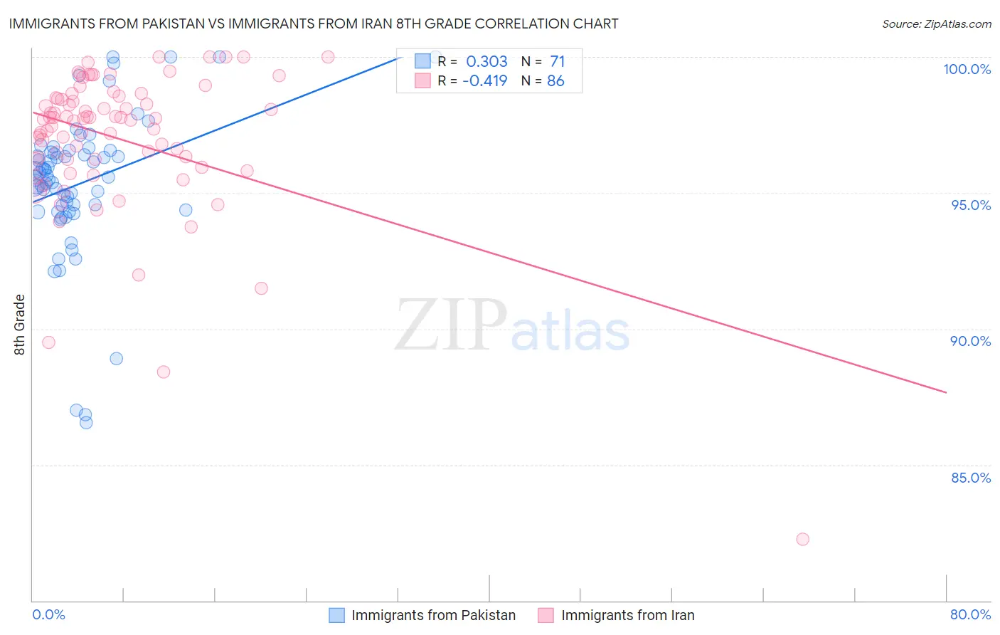 Immigrants from Pakistan vs Immigrants from Iran 8th Grade Correlation Chart