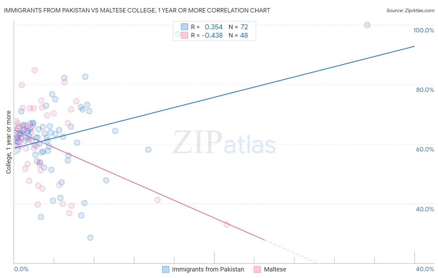 Immigrants from Pakistan vs Maltese College, 1 year or more Correlation Chart