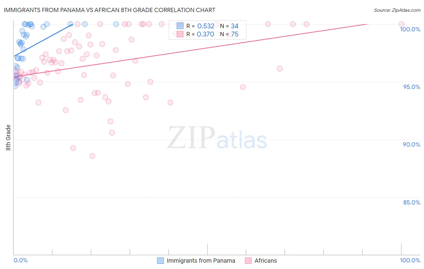 Immigrants from Panama vs African 8th Grade Correlation Chart