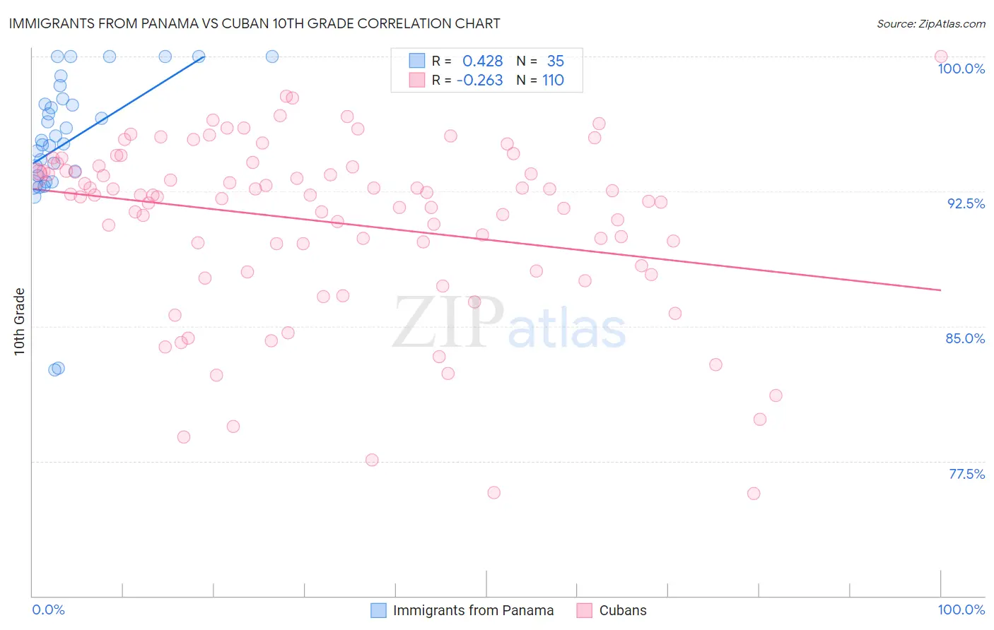 Immigrants from Panama vs Cuban 10th Grade Correlation Chart