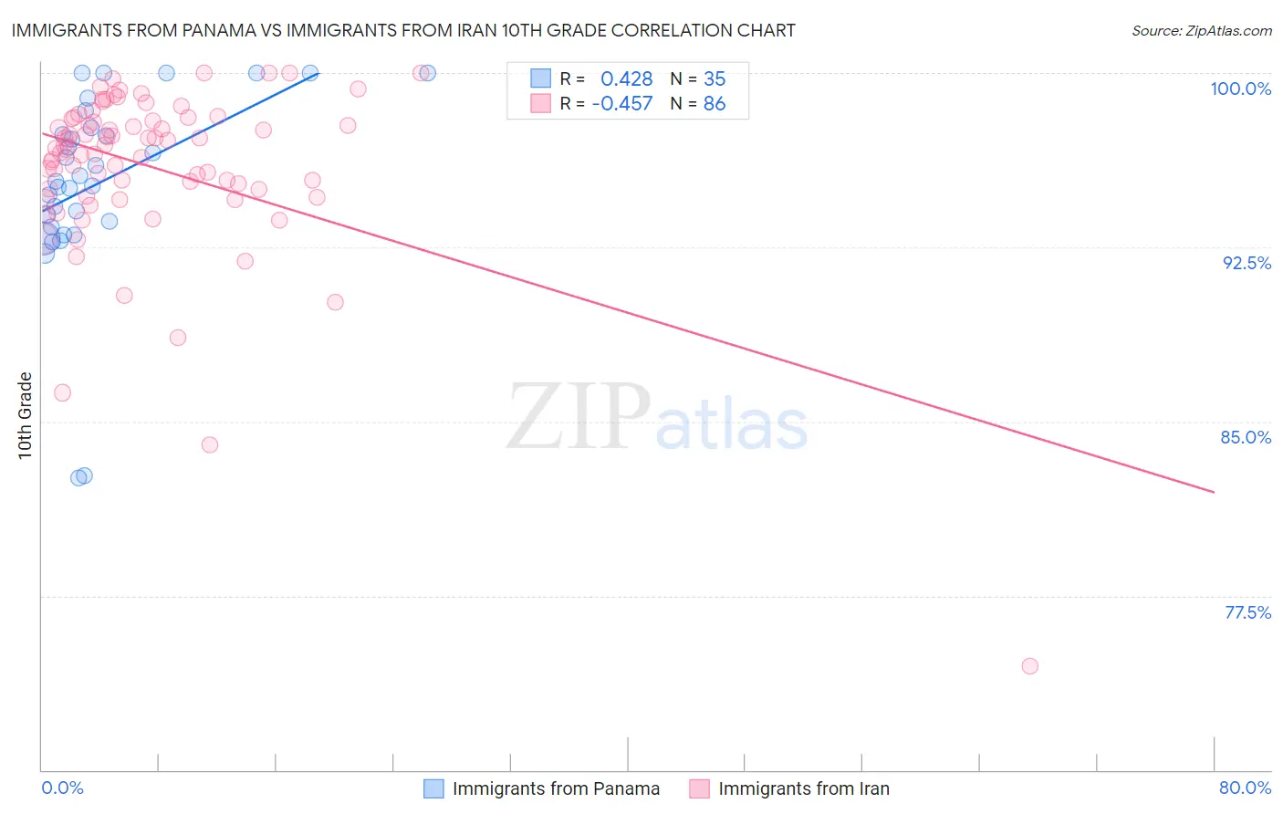 Immigrants from Panama vs Immigrants from Iran 10th Grade Correlation Chart