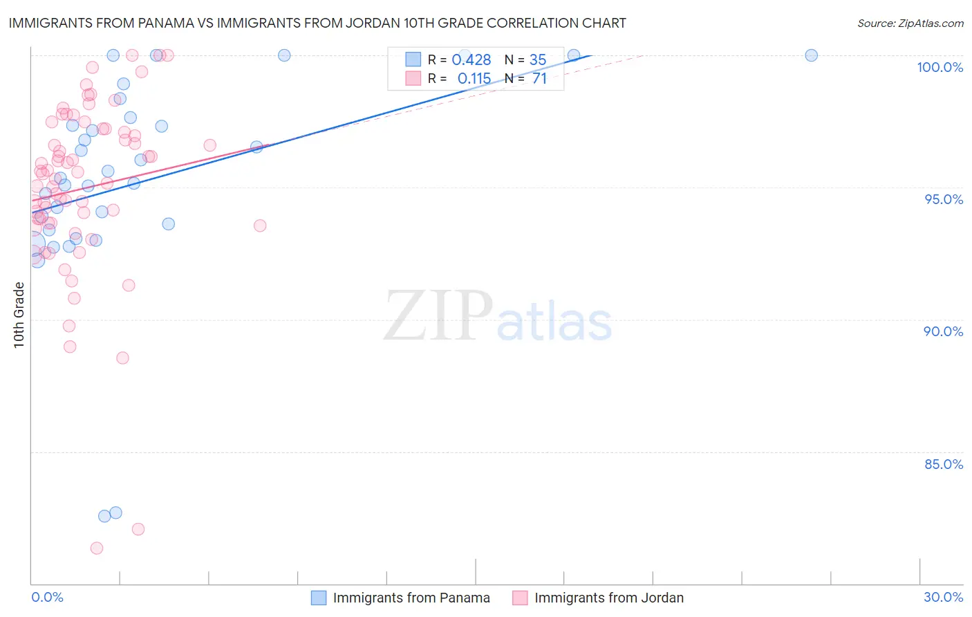 Immigrants from Panama vs Immigrants from Jordan 10th Grade Correlation Chart