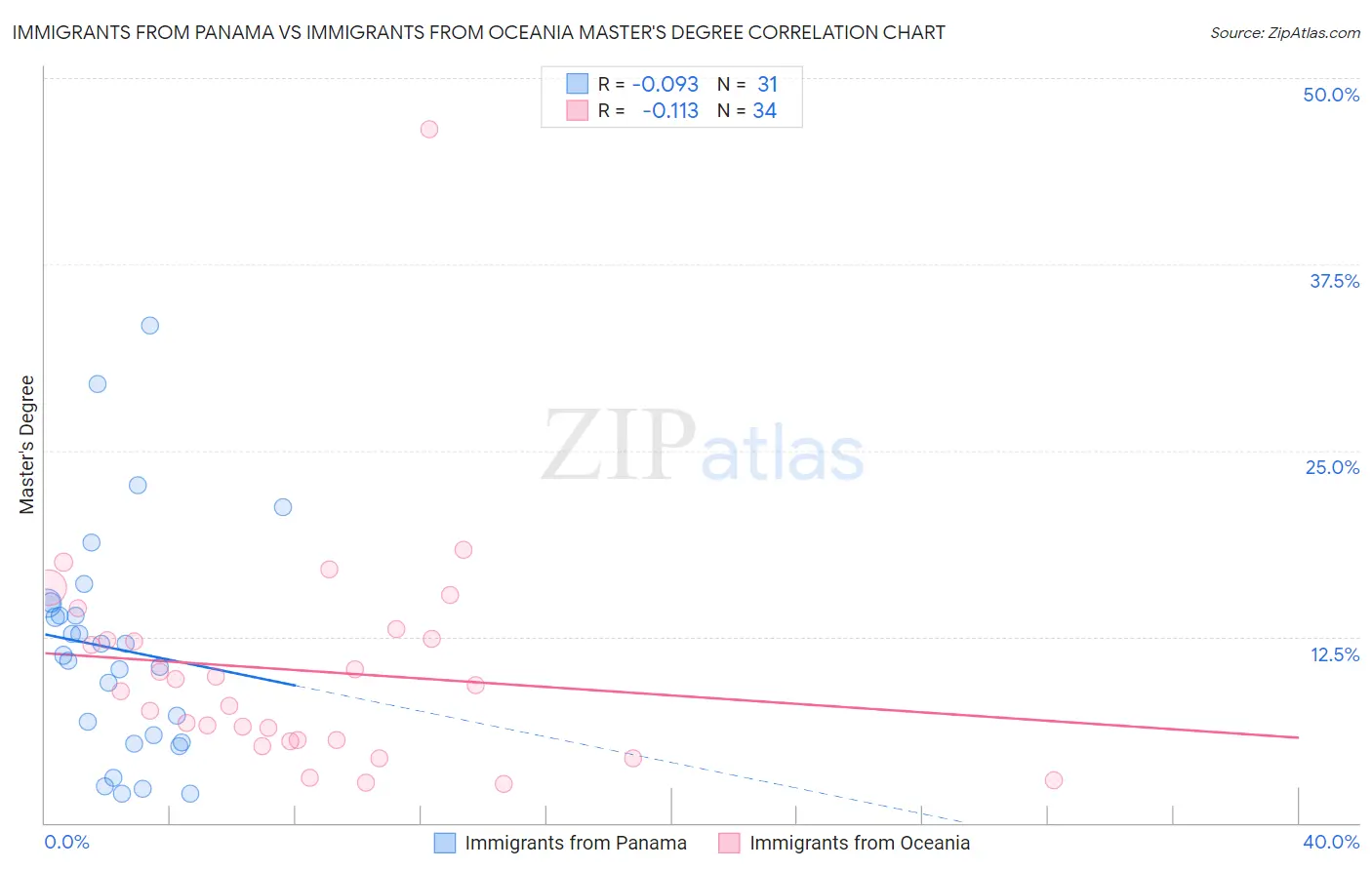 Immigrants from Panama vs Immigrants from Oceania Master's Degree Correlation Chart