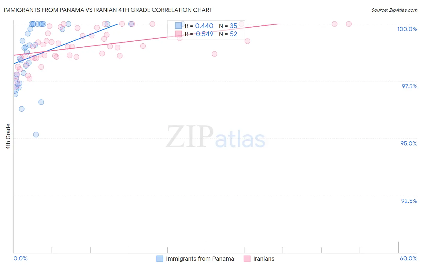 Immigrants from Panama vs Iranian 4th Grade Correlation Chart